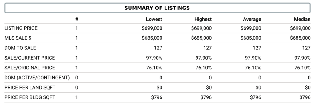 Single Family Homes – There were no home sales in June through November, below are the stats for May 2025.