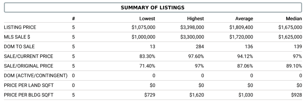 Single Family Homes – There were no sales in August through November, below are stats for July.