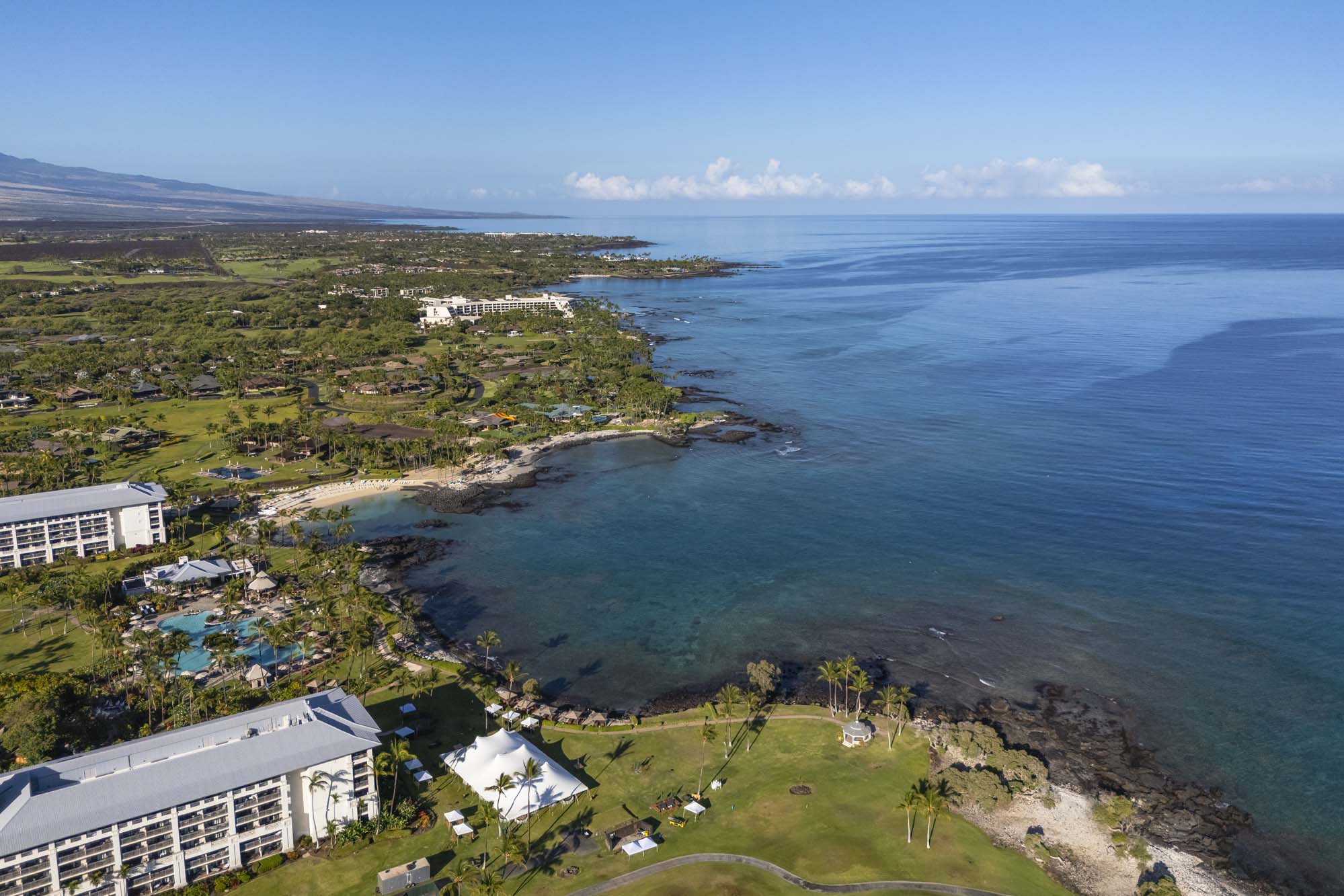 The Fairways neighborhood is located in the world-class Mauna Lani Resort on the Kohala Coast, just a 25-minute drive north of Kona International Airport. Take the Queen Ka`ahumanu Highway (Hwy 11) from the airport and turn left onto Mauna Lani Drive. At the roundabout, go right onto North Kaniku Drive. The entrance to The Fairways will be on your left.