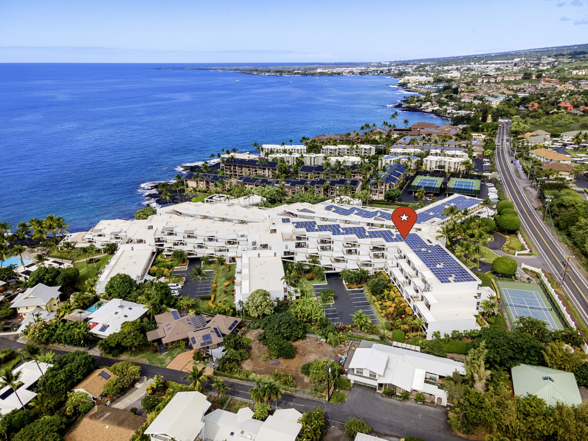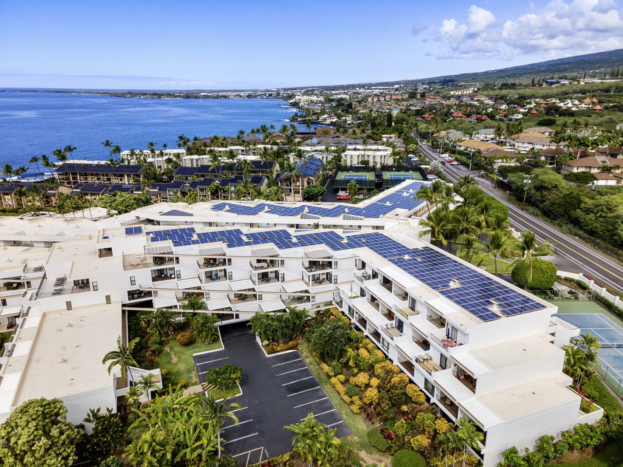 Located off Ali`i Drive, Royal Sea Cliff Kona is just a few minutes’ drive north to Kailua Village or a few minutes’ drive south to the Keauhou Resort area. The all-concrete building has been meticulously maintained and ensures each unitʻs privacy; the complex is surrounded by tropical landscaping. Elevators are conveniently located from the underground parking to the seventh floor of the building.