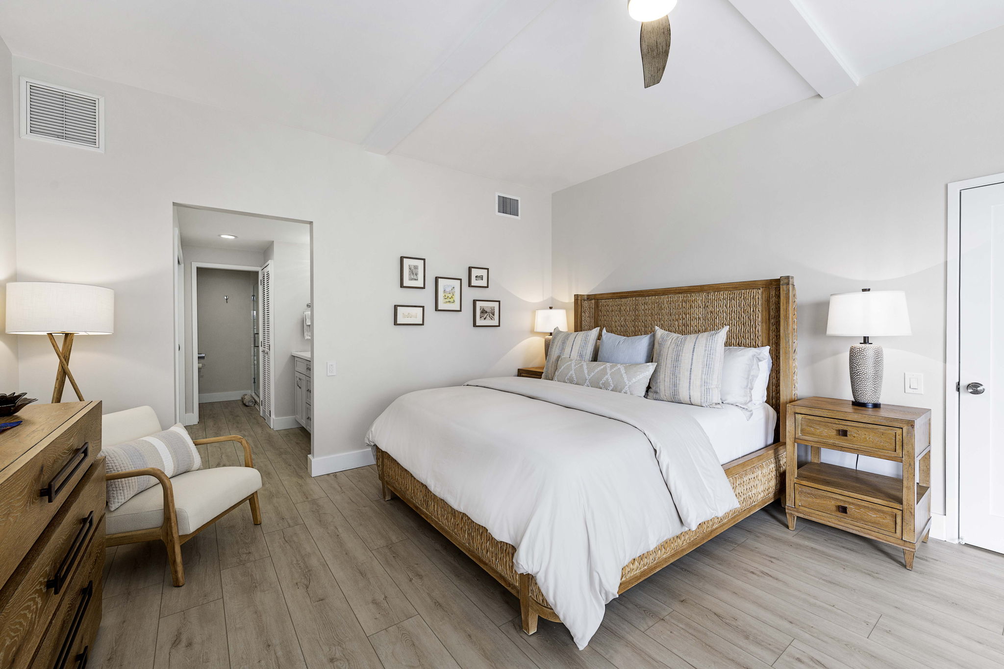Thoughtful updating of each room includes luxury vinyl flooring, smooth ceilings, fresh paint, contemporary lighting, new fixtures, and new ceiling fans.