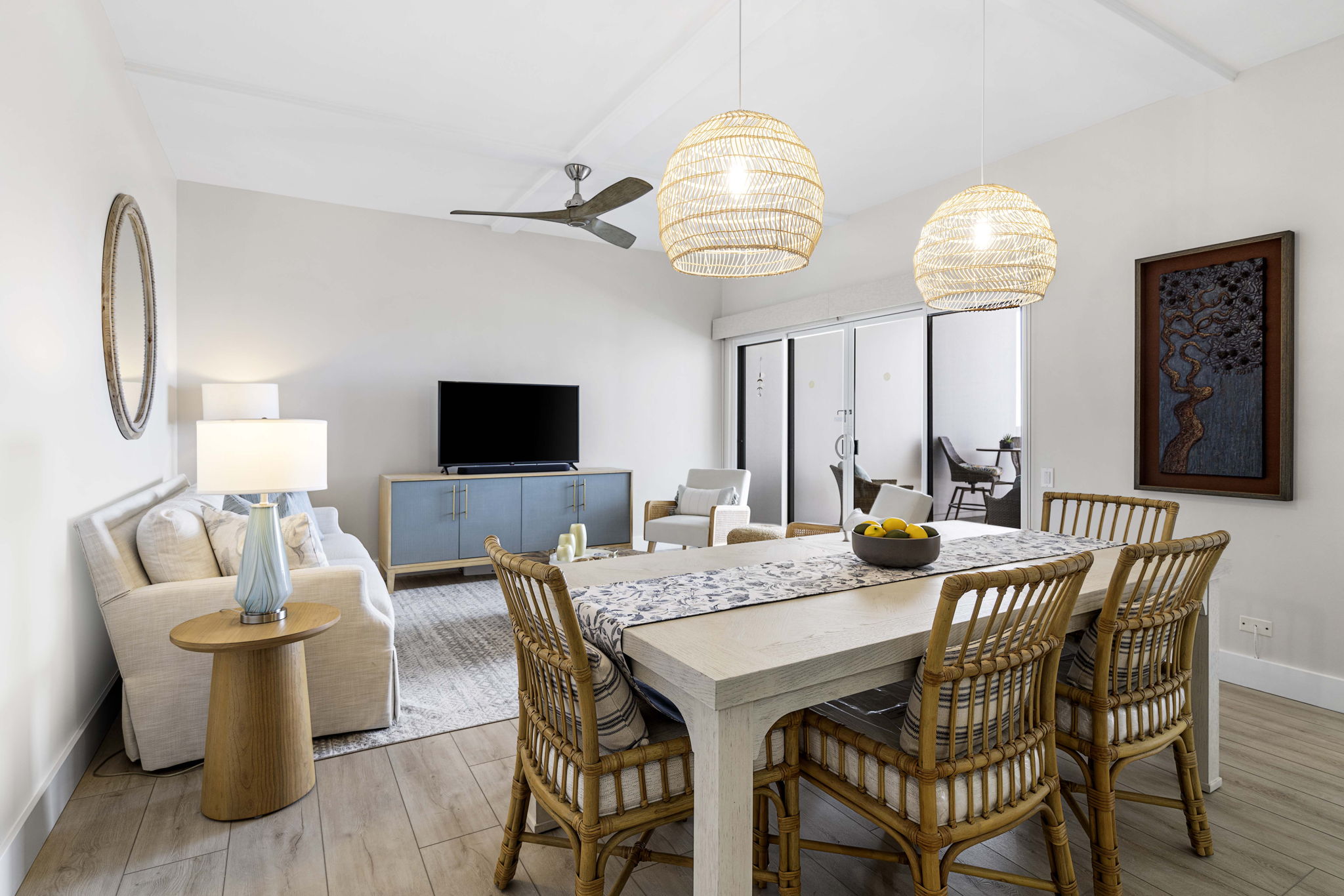 An expansive 171-square-foot lānai seamlessly extends the living and entertainment space, becoming the perfect setting for morning coffee and evening cocktails while enjoying views of the Pacific.