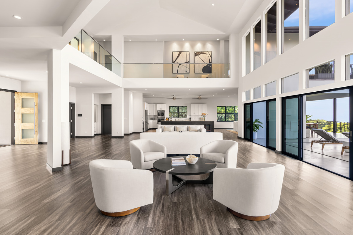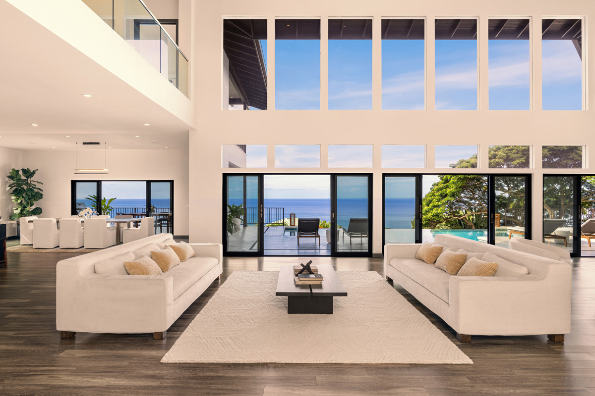The home greets you with a breathtaking first impression, a 30-ft floor-to-ceiling glass wall framing cinematic ocean views. The boundary between indoors & outdoors fades with gentle breezes & the calming presence of the ocean.
