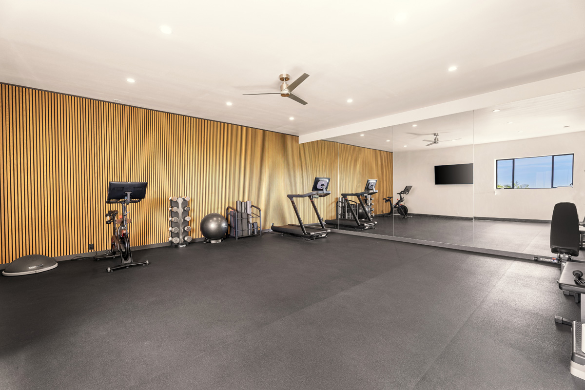 The gourmet kitchen is both beautiful & functional, anchored by a 20-foot stone island & equipped for the demands of any chef. A large light-filled family/media room & an office provide flexible spaces for work or relaxation. Other amenities include a fully equipped state-of-the-art gym, a fire pit to enjoy unforgettable evenings under starry skies, & a spacious lawn with lush gardens.