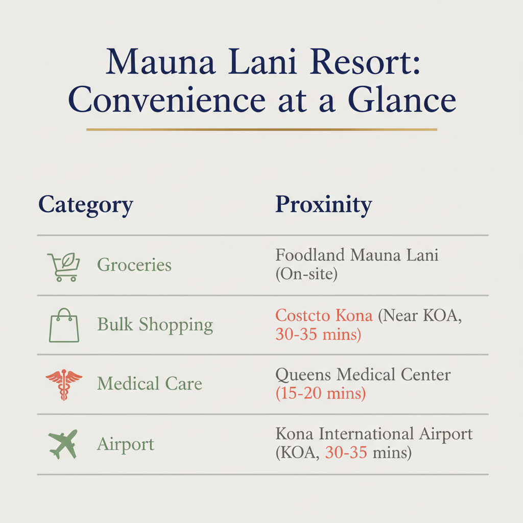 Is Mauna Lani Resort Convenient for Groceries, Doctors, and the Airport?
