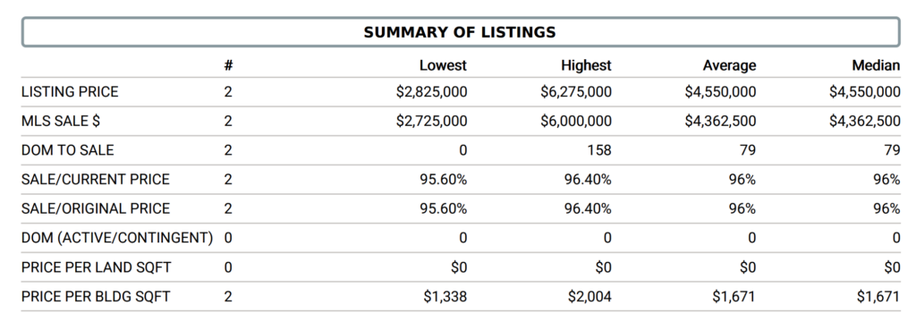 Condominium Sales – There were no condo sales in the month of January, below are the stats from August 2025.