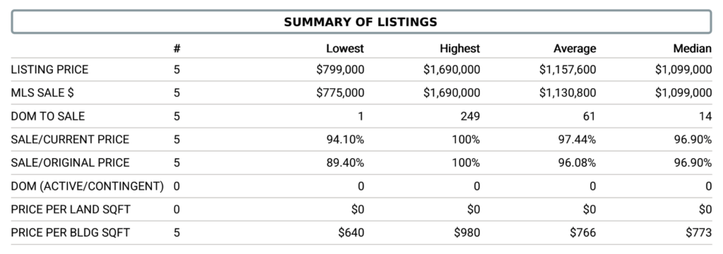 Single Family Homes – There were no home sales in the month of January, below are stats from May 2025.