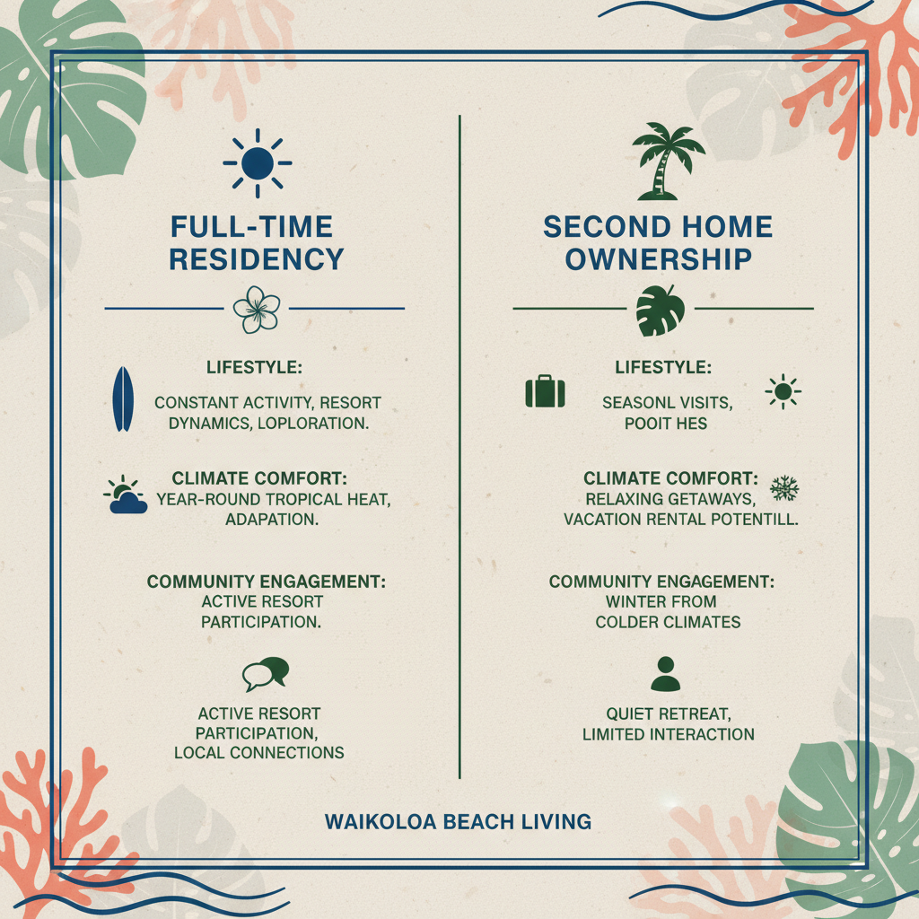 What are the Practical Differences in Lifestyle Between Full-Time and Second Home Ownership in Waikoloa Beach?