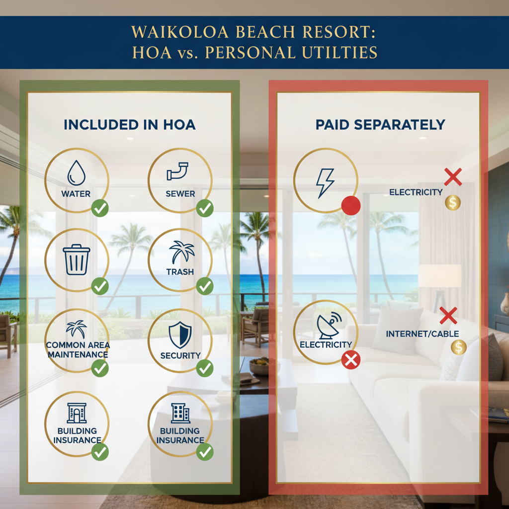 Quick Answer: In Waikoloa Beach Resort, HOA fees typically range from $1,000 to $4,000 per month, covering essential services like water, sewer, trash, gate maintenance, and building insurance. Most complexes require owners to pay separately for electricity and, in some cases, internet or cable, although many now bundle basic internet into the HOA.
